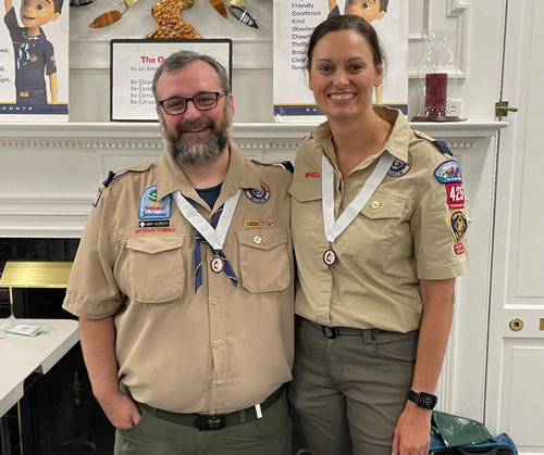 Congratulations to Adria & Jimmy Kilbreath for receiving the Cross and Flame award for scouting! The Cross and Flame Award recognizes adult leaders who have given exceptional service in the use and promotion of the Scouting Program!
